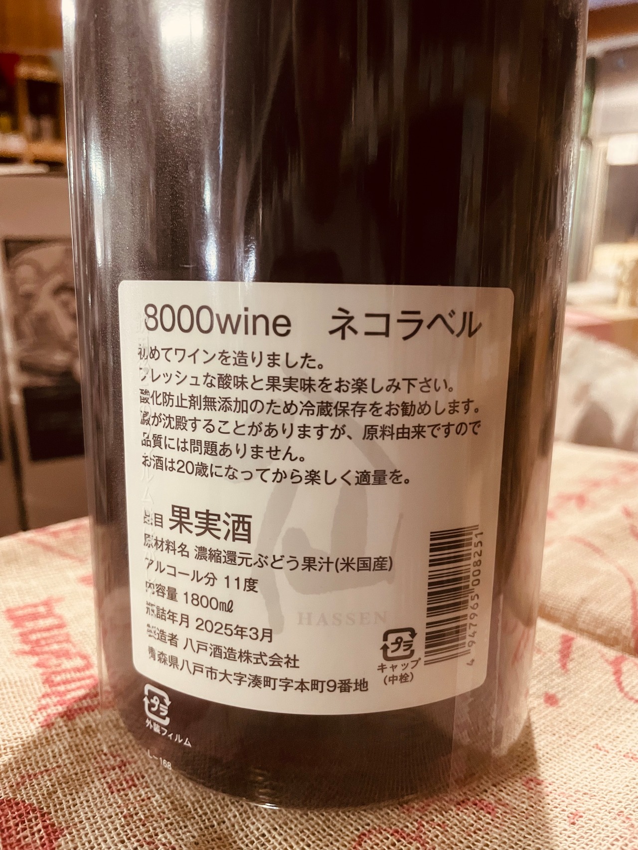 青森 八戸酒造 8000wine ネコラベル 1800ml【飲食店様限定】