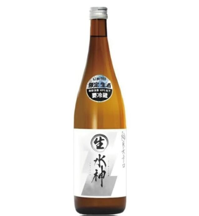 あさ開の辛口純米酒「水神」を一切加熱処理をせず瓶詰した「純米生原酒」。